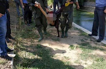 ӨКМнын куткаруучуларды даярдоо боюнча борборунун куткаруучулары каза болгондун сөөгүн чыгарып, милиция кызматкерлерине өткөрүп беришкен.