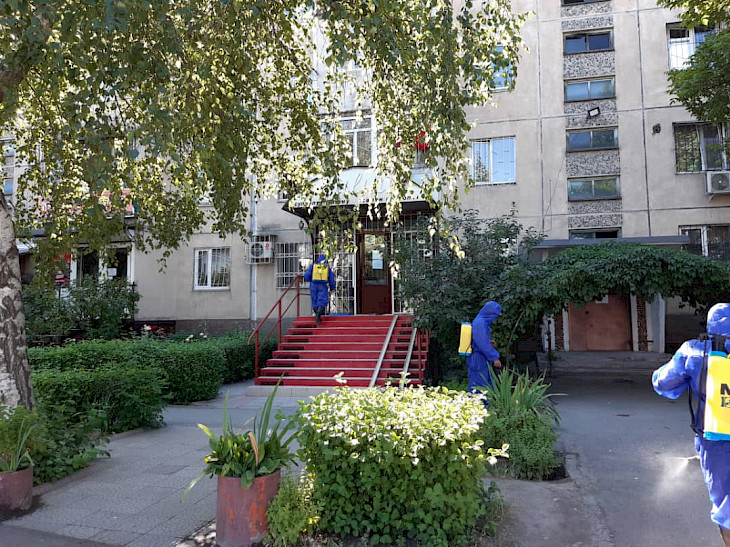 Маалыматка ылайык, кечээ, 25-июнда Бишкектин Асанбай жана №6, №11, №12 кичи райондорундогу турак жайлардын короолорунда, балдар ойноочу аянтчаларда, дүкөндөрдө, дарыканаларда жана жөө жүрүүчү жолдордо дезинфекция иштери жүргүзүлдү. Жалпы аянты 4800 чарчы метрди түздү.
