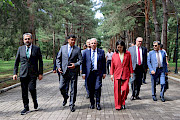 Бишкек, 10.07.24. /Кабар/. Бишкек шаарынын мэри Айбек Жунушалиев менен Анкара шаарынын мэри Мансур Яваш борбор калаадагы Мустафа Кемал Ататүрк атындагы сейил багында Ататүрктүн эстелигине гүл коюшту.