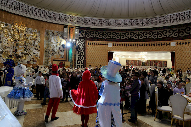 Жаңы жылдык майрамга турмуштук оор кырдаалга кабылган үй-бүлөлөрдүн 500 баласы чакырылган. Балдар үчүн жаңы жылдык программа уюштурулду.