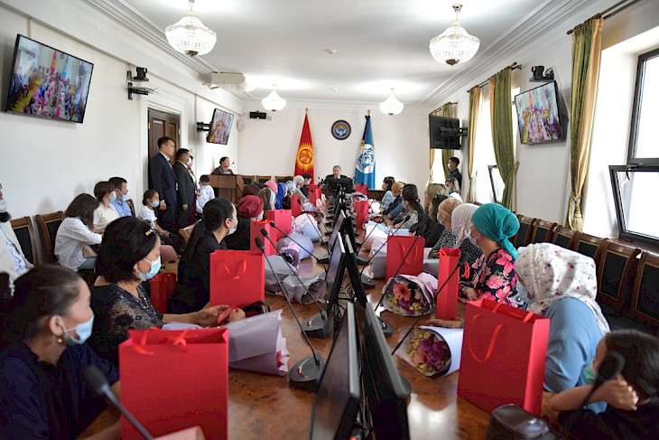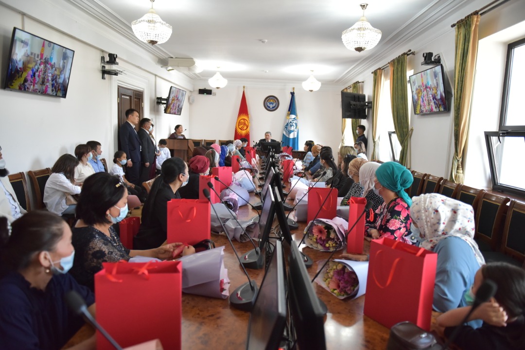 Бишкек, 01.06.21. /Кабар/. Бишкек шаарында жети жана андан көп баласы бар жана аларды жакшы тарбиялап жаткан энелер “Баатыр эне” ордени менен сыйланышты. Бул тууралуу Бишкек мэриясынын басма сөз кызматы билдирет.
