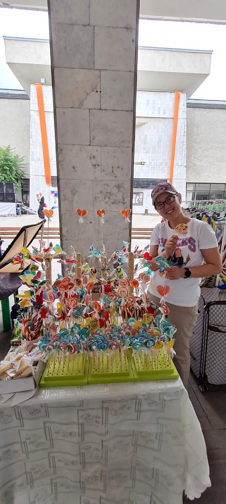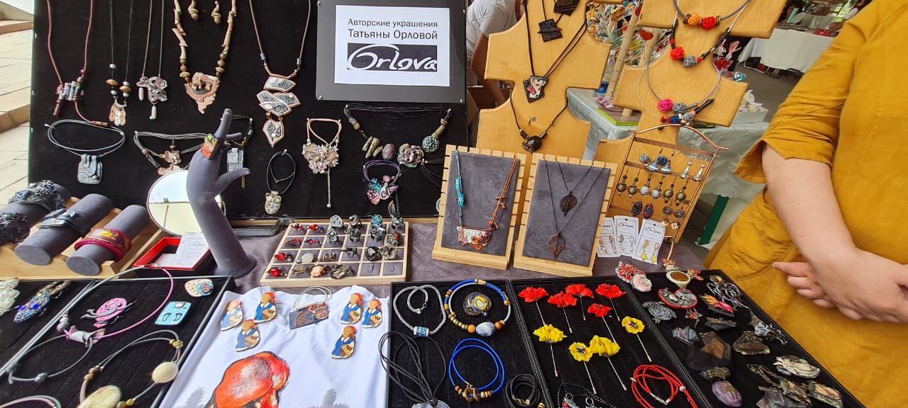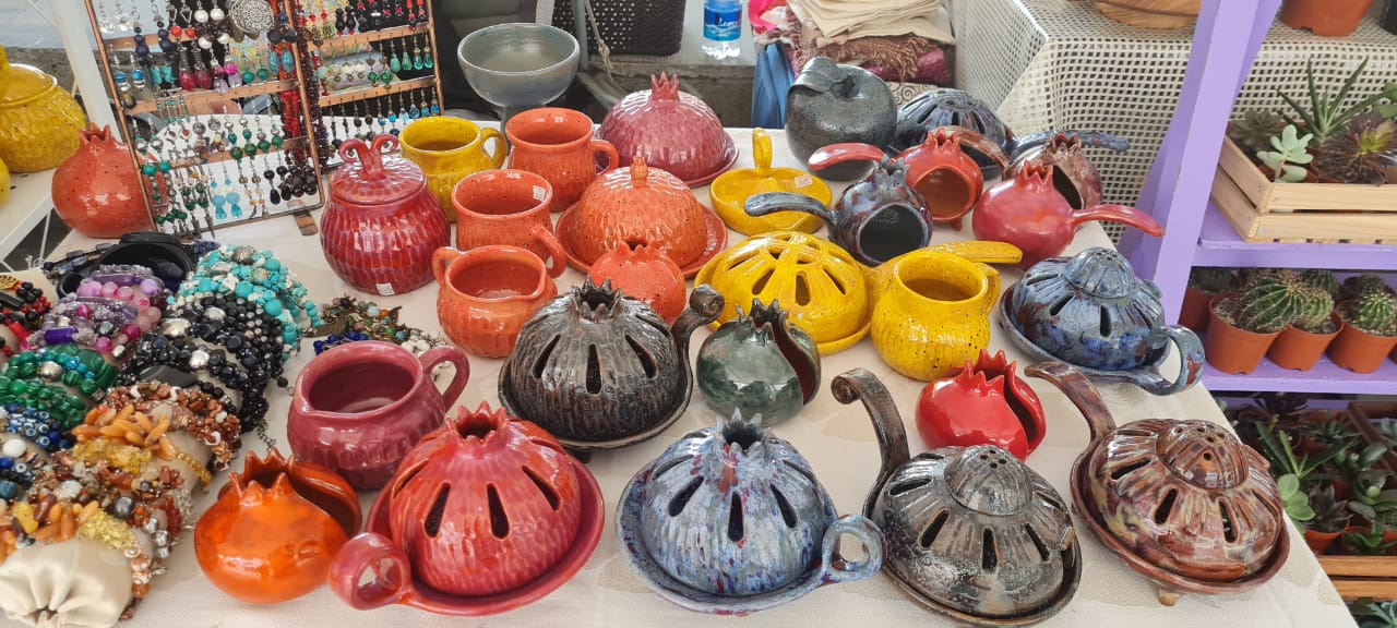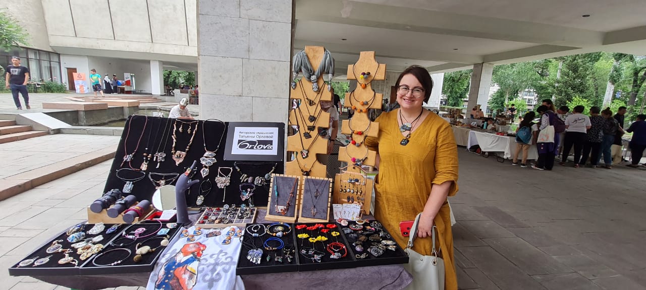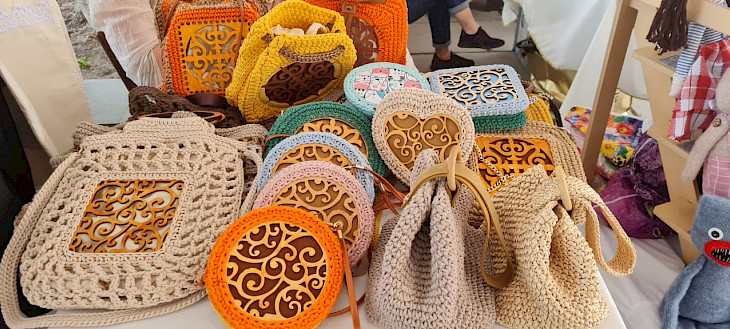 Көргөзмөдө этникалык стилде жасалган буюмдар, колго жасалган буюмдар, тиричилик буюмдары, ар кандай зергер буюмдар, сумкалар, оюнчуктар, сувенирлер жана тамак-аш азыктары коюлган.