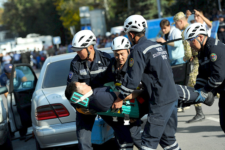 Бишкек, 05.10.18. /Кабар/. Бишкек шаарында бүгүн, 5-октябрда, Кырсыктардын тобокелдигин кыскартуу күнүнө карата майрамдык иш-чара өттү. Кыргыз Республикасынын вице-премьер-министри Жеңиш Разаков аталган иш чаранын маанилүүлүгүн жана зарылдыгын белгилеп, өзгөчө кырдаалдар орган кызматкерлеринин кесипкөйлүгү жана тажрыйбасы алдыга коюлган милдеттерди ийгиликтүү аткарууга мүмкүндүк берерине ишеним билдирди. Бул тууралуу өкмөттүн аппаратынын маалыматтык камсыздоо бөлүмүнөн билдиришти.