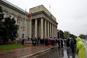 Бишкек,16.04.18. /Кабар/. Бишкекте бүгүн КР өкмөтүнүн имаратынын алдына Ош базарындагы өрттөн жапа чеккен соодагерлер келтирилген чыгымды төлөп берүүнү талап кылып митингге чыгышты.