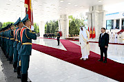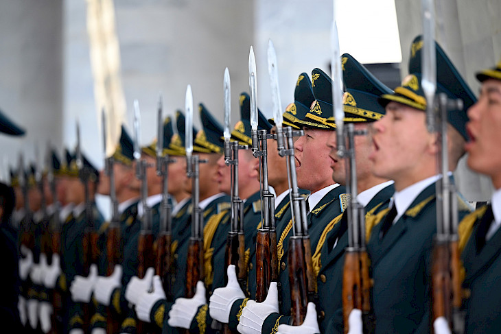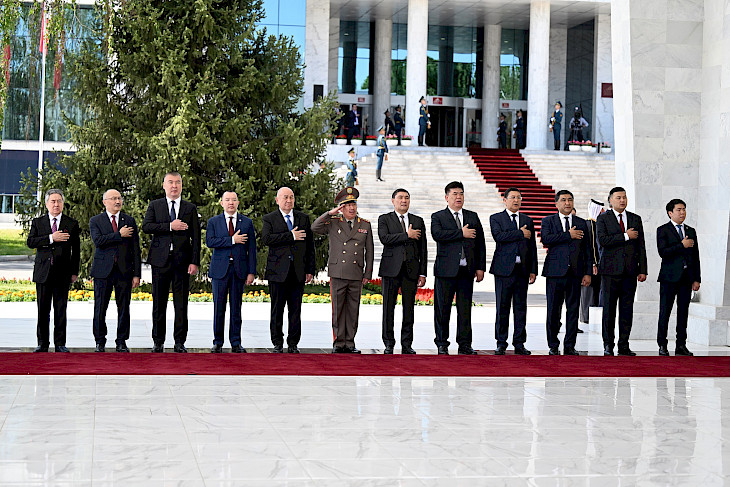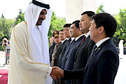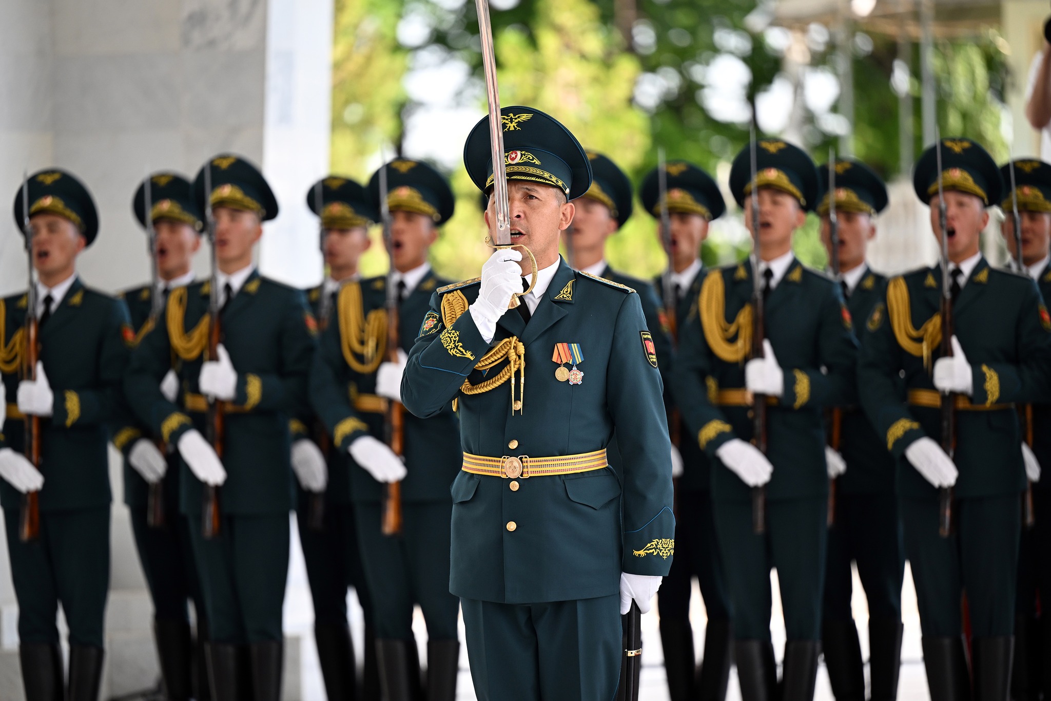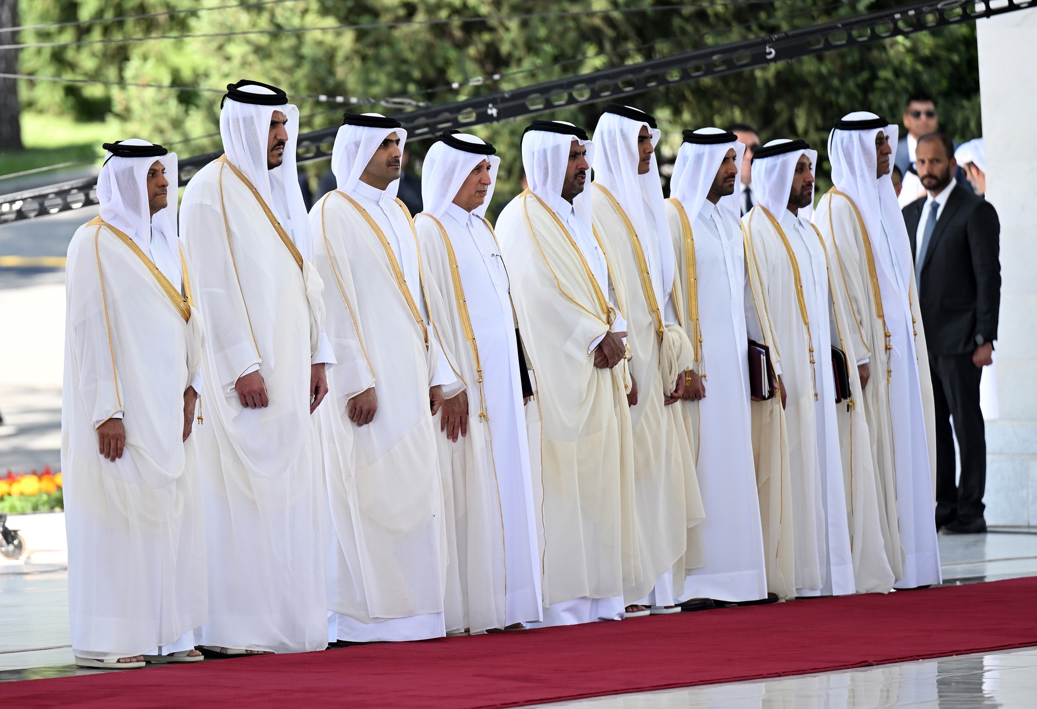 Андан соң Садыр Жапаров жана Шейх Тамим бин Хамад Аль Тани өздөрүнүн расмий делегацияларынын мүчөлөрүн тааныштырды, андан кийин Ардак кароолдун жоокерлери мамлекет башчыларынын алдында салтанаттуу марш менен өтүштү.