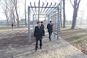 Бишкек, 07.12.23. /Кабар/. Бишкектин Биринчи май районунун акими Мурат Осмонов Нариманов жана Алтай тилкелеринин кесилишиндеги жаңы сейил бактын курулуш иштеринин жүрүшү менен таанышты.