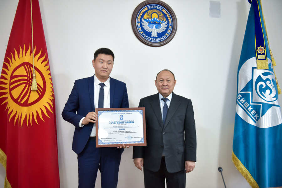 Бишкек, 23.11.22./Кабар/. Борбор калаанын мэри Эмилбек Абдыкадыров бир катар шаардык сынактардын жеңүүчүлөрүн акчалай сертификаттарды тапшырды.