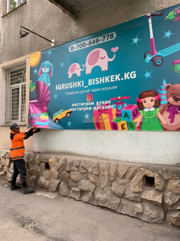 Белгилей кетсек, Бишкек шаарынын мэриясы «Кыргыз Республикасынын мамлекеттик тили жөнүндө” мыйзамынын талаптарына жооп бербеген жана уруксатсыз орнотулган жарнамаларды алууда.