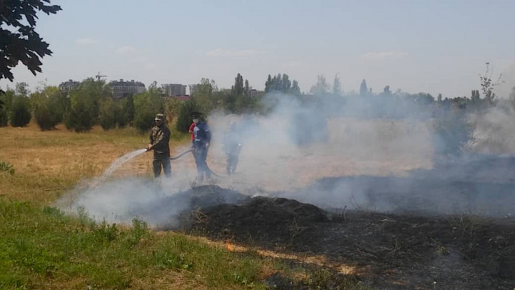 Маалыматка ылайык, бүгүн түшкө маал "Ынтымак" сейил багында болжол менен бир гектар аянттагы куураган чөп күйгөн.