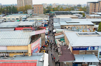 Башкы балатыны "Тазалык" муниципалдык ишканасынын кызматкерлери орнотууда. Балаты быйыл да чоң фонтандын ордуна орнотулуп жатат.