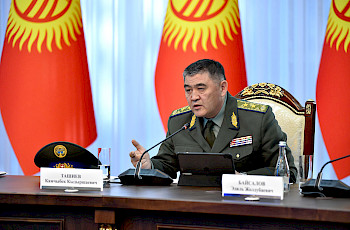Отурум Кыргызстандын Коопсуздук кеңешинин катчысы Дамир Сагынбаевдин төрагалыгы алдында өтүүдө.
