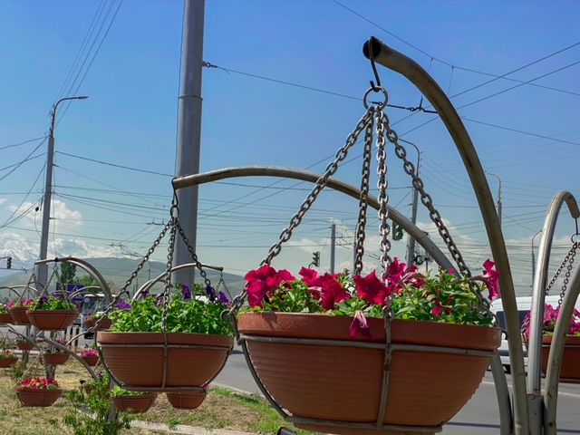 Маалыматка ылайык, жашылдандыруучулар 368 атайын идишке бир жылдык гүлдөрдү отургузуп, жол боюна илип чыгышты.