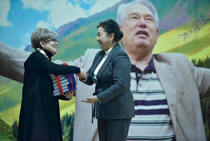Бишкек шаарынын вице-мэри Асель Куламбаева музейдин ачылышы менен куттуктап, мектепке жазуучунун чыгармаларынын толук жыйнагын белек кылды.