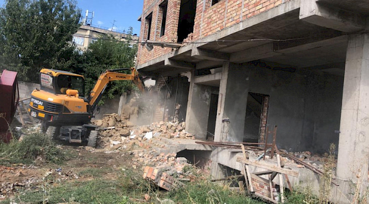 Маалыматка ылайлык, учурда мэриянын Жер пайдалануу жана курулуш башкармалыгы «Тазалык» муниципалдык ишканасы менен биргеликте Кривоносов көчөсү, 2 дарегинде жайгашкан 4 кабаттуу мыйзамсыз курулушту түрттүрүү иштерин баштады.
