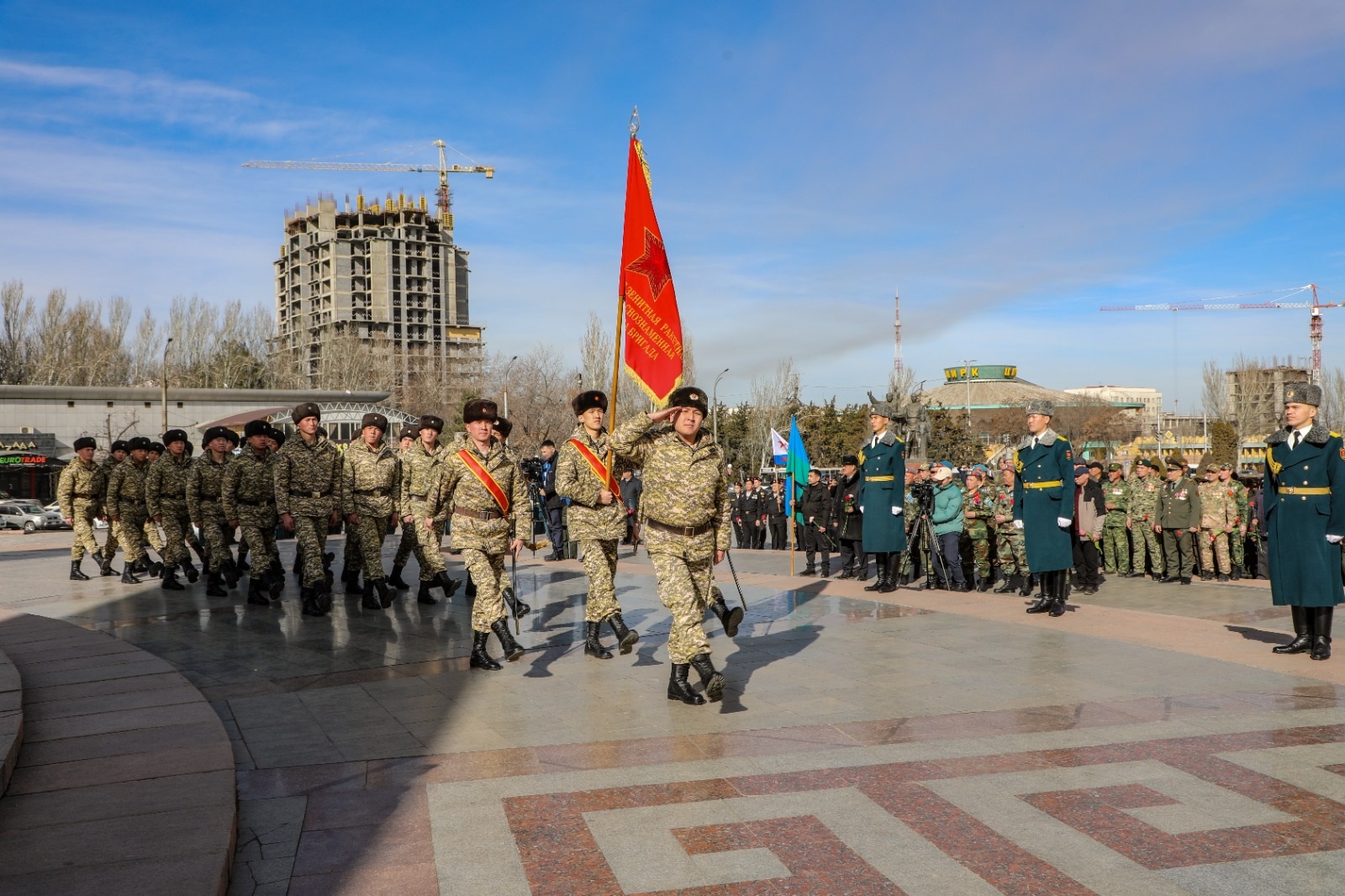 Иш-чара Бишкек гарнизонунун кошуундарынын жана аскер бөлүктөрүнүн аскер кызматчыларынын салтанаттуу жүрүшү менен аяктады.