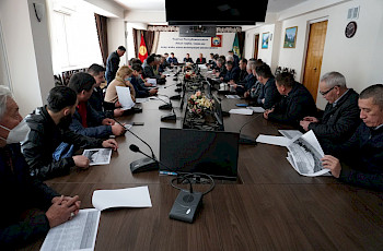 Мэрдин милдетин аткаруучу Бактыбек Кудайбергенов жеке өзү жүктү жөнөтүү көзөмөлдөп, жарандарды тынчтыкка чакырды.