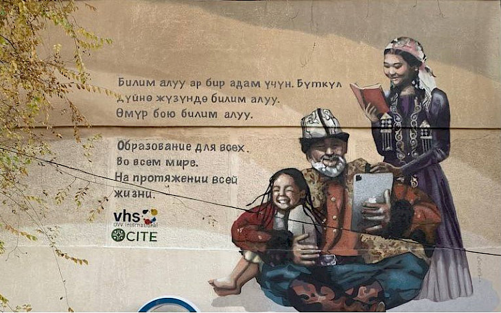 "Муралда ар кандай курактагы адамдар чагылдырылган. Сүрөттө адам өмүр бою окууга тийиш экендигинин маанилүүлүгү баса белгиленет, анткени билимдин жардамы менен биз көз карашыбызды кеңейте алабыз", - деп белгилешти сүрөтчүлөр.