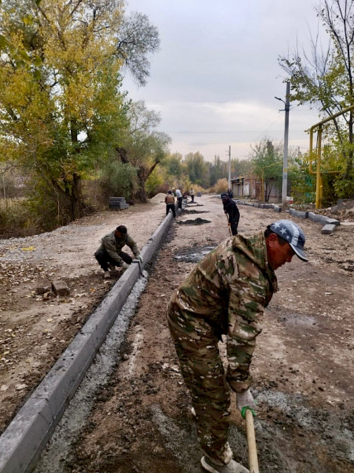 Маалыматка ылайык, учурда жолчулар Дорожный тилкесин Элебесов көчөсүнөн каналга чейин куруу иштерин жүргүзүп жатышат. Анда бордюрларды орнотуу жана асфальт салууга чейинки жолдун негизин даярдоо иштери аткарылууда. Ал эми ирригация системасын орнотуу иштери аяктады.