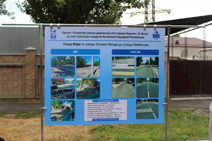 Бишкек шаарынын мэриясы менен China Road and Bridge Corporation корпорациясынын ортосунда түзүлгөн келишимге ылайык, жалпы узундугу 70 чакырымдан ашкан 60 көчө жана 5 көпүрө оңдолуп курулат.