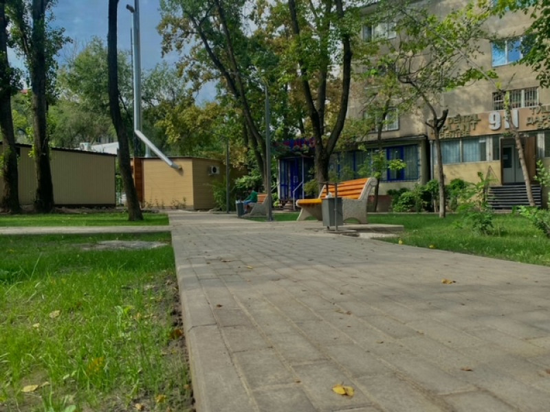 Ошондой эле сквердин аймагы жашылдандырылды. Жеринде топурак себилип, газон чөптүн уруктары себилди.