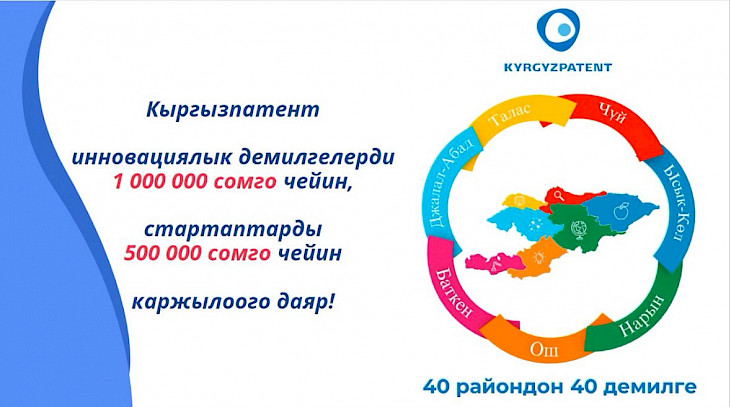 Эскерте кетсек, «40 райондон – 40 демилге» инновациялык демилгелерди тандоо долбоорун Кыргызпатент мамлекеттик мекемеси ишке ашырып келет. Долбоор өлкөнүн региондорун социалдык-экономикалык жактан өнүктүрүү үчүн экономиканы, илимди жана техниканы өнүктүрүүнүн артыкчылыктуу багыттарында инновациялык долбоорлорду стимулдаштырууга жана илгерилетүүгө багытталган. Буга катар тандалып алынган бир инновациялык демилгени ишке ашырууга 1 млн сомго чейин акча каражаты берилет.