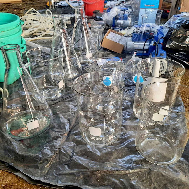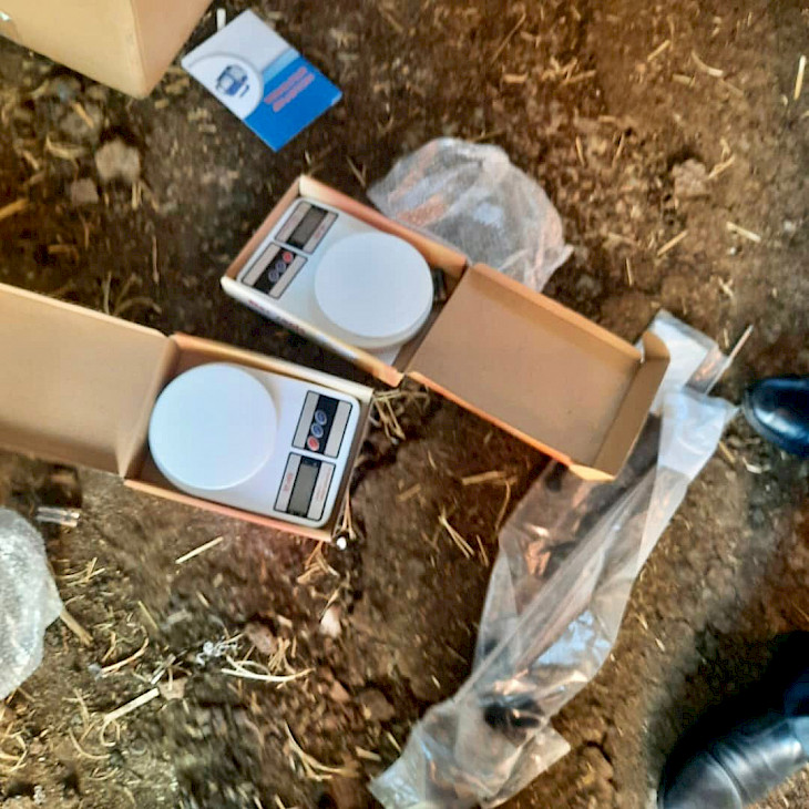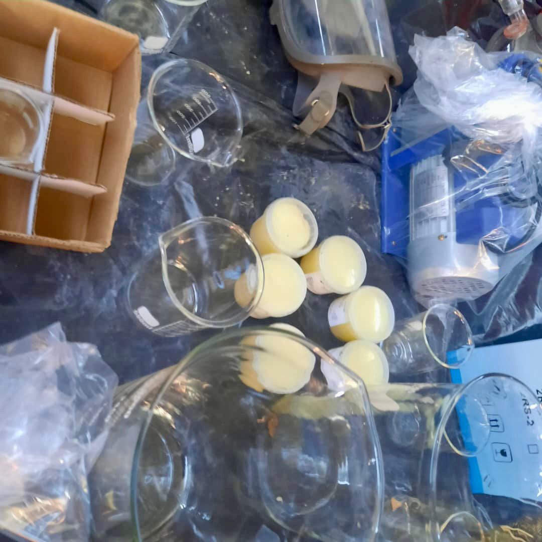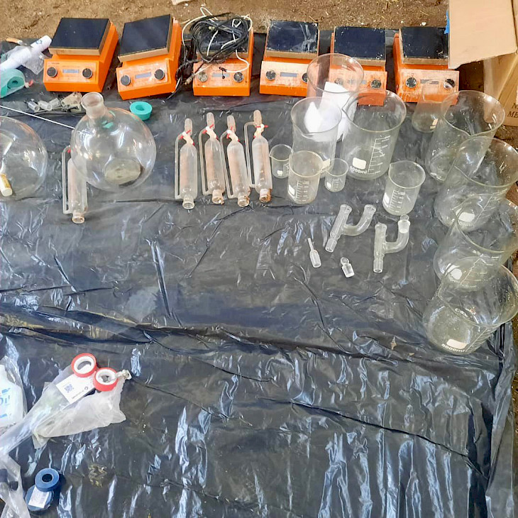 Баңги лабораториясында салмагы 3 кг 790 граммды түзгөн мефедрон психотроптук заты салынган желим баштык, белгисиз суюктук толтурулган 25 канистр, ошондой эле атайын жабдуулар, бир нече аппараттар, насостор, таразалар табылган жана алынган, чака, колба жана ар кандай көлөмдөгү жана формадагы башка айнек идиштер алынган. Алынган прекурсорлордун жалпы салмагы 425 килограммды түзгөн.