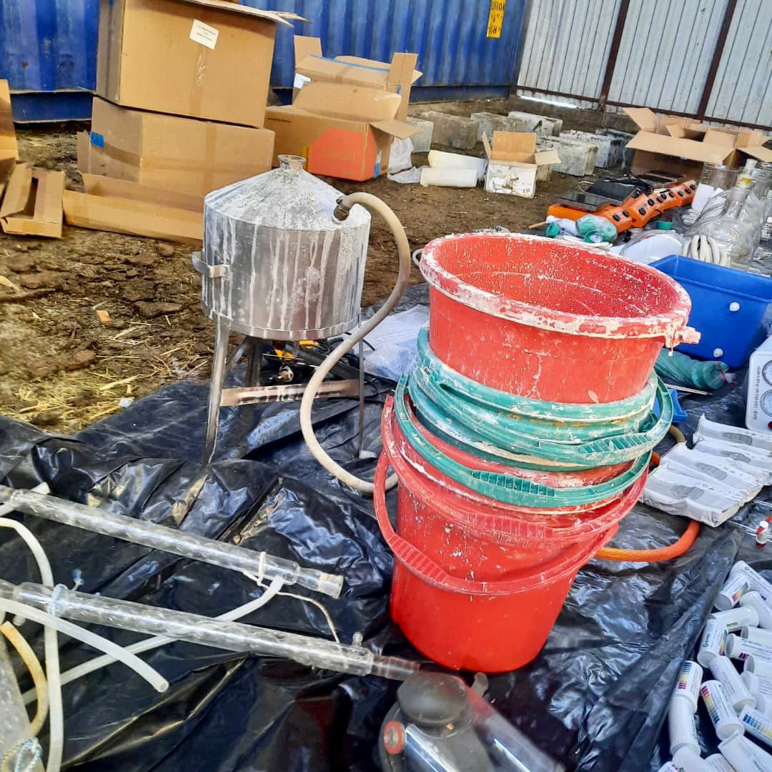 Тинтүү учурунда кампанын тиркемесинде жасалма баңгизаттарды колго жасоочу лаборатория үчүн жабдылган бөлмө табылган.