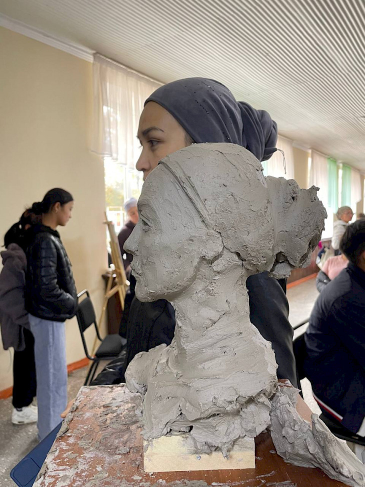 Бул күндөрү көчмө көргөзмөнүн алкагында чопо менен иштөө боюнча жана калем менен сүрөт тартуу техникасы боюнча мастер-класстар өткөрүлөт. Буга чейин төрт күндүк иш-чара Талас шаарынын тургундары үчүн өткөрүлгөн.