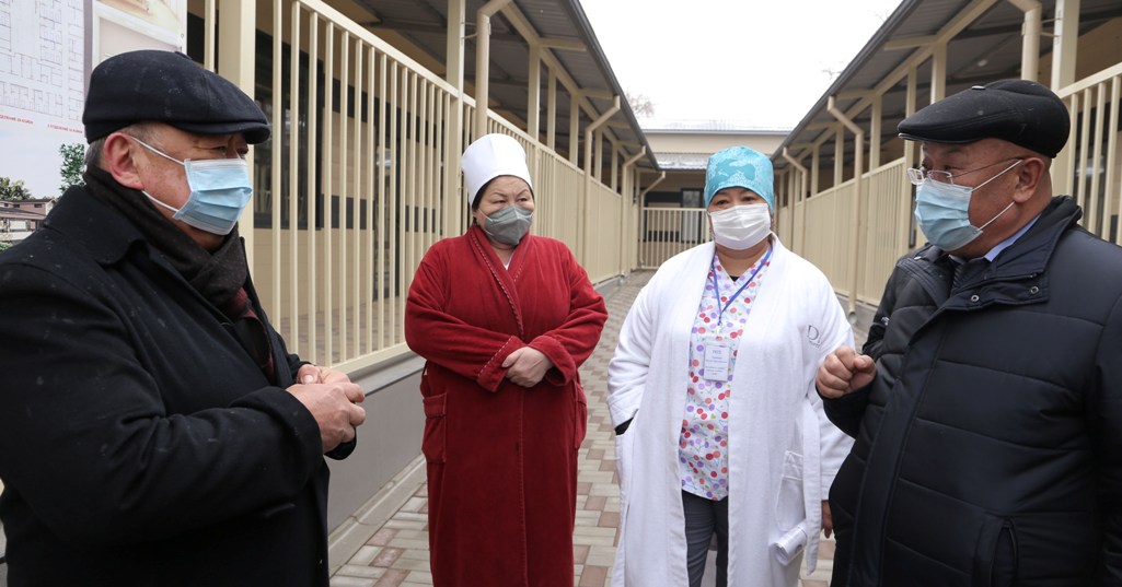 Жумушчу сапардын алкагында Рыскелди Мусаев № 1 «Семетей» шаардык клиникалык ооруканасынын жугуштуу оорулар бөлүмүндө жана Республикалык жугуштуу оорулар ооруканасынын жугуштуу оорулар боюнча жаңы стационарында болуп, ал жердеги COVID-19 оорусунун жана ооруканадан тышкары пневмония оорусунун симптомдору бар бейтаптарды кабыл алууга даярдык көрүү процесси менен таанышты.