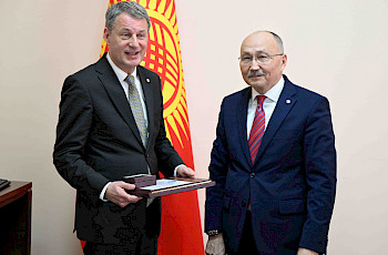 Бишкек, 15.05.24. /Кабар/. Бүгүн Жогорку соттун төрагасынын орун басары Нурлан Мусаев Дүйнөлүк банктын эксперти Клаус Декерд менен жолукту.