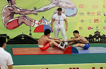Чолпон-Ата, 05.09.18. /Кабар/. Үчүнчү Дүйнөлүк көчмөндөр оюндарынын алкагында “Газпром” ден соолукту чыңдоо борборунда кыргыз күрөшү боюнча мелдештер башталды.