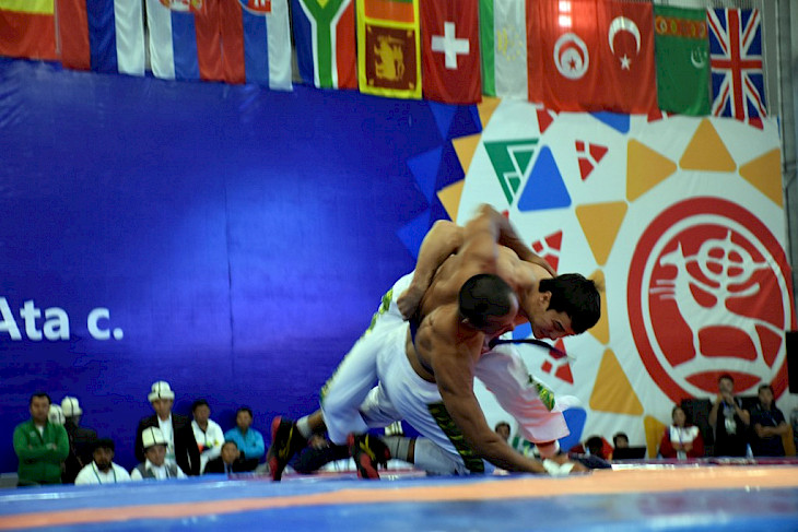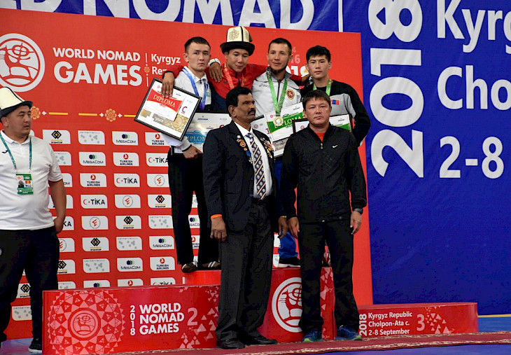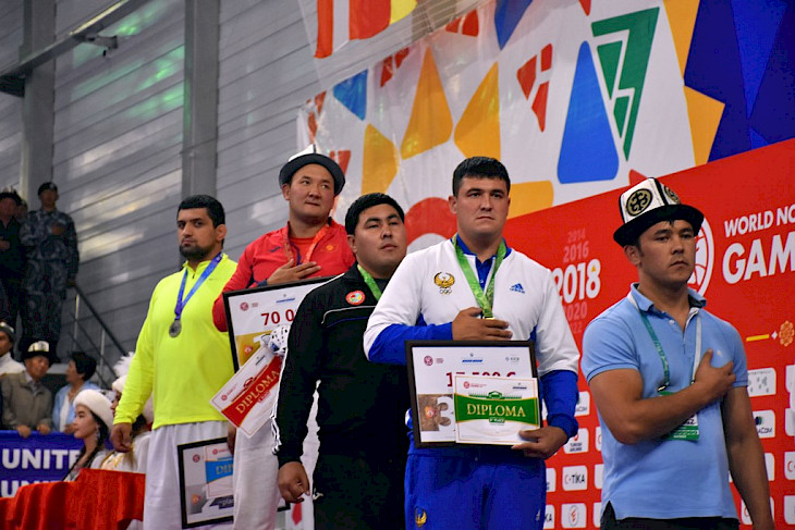 Бишкек, 06.09.18. /Кабар/. Ысык-Көл облусунун Бактуу-Долоноту айылындагы Ден соолукту чыңдоо борборунда үчүнчү Дүйнөлүк көчмөндөр оюндарынын алкагында кыргыз күрөшү боюнча мелдеш болуп өттү. Ага 38 өлкөдөн 131 сспортчу катышкан.