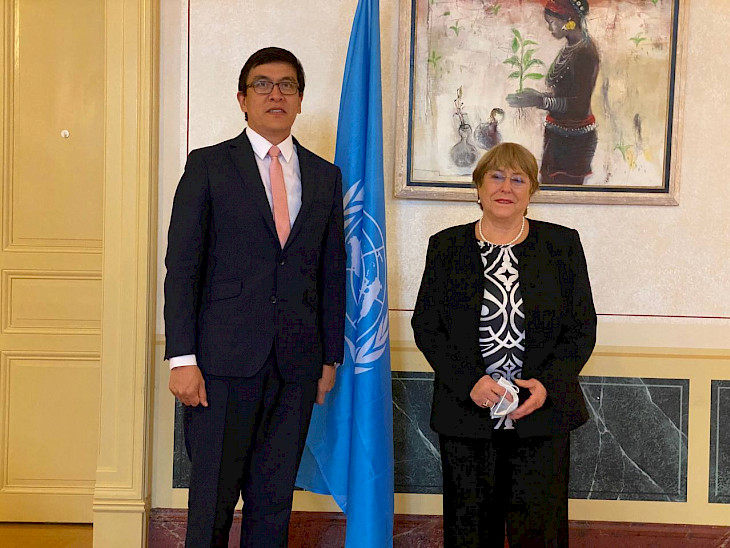 Бишкек, 09.04.22. /Кабар/. Министрлер кабинетинин төрагасынын орун басары Эдил Байсалов Женевага жумушчу сапарынын алкагында Бириккен Улуттар Уюмунун Адам укуктары боюнча Жогорку комиссары Мишель Бачелет менен жолугушту.