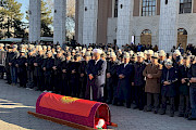 Бишкек, 27.11.24. /Кабар/. Министрлер кабинетинин төрагасынын орун басары Эдил Байсалов көрүнүктүү окумуштуу-хирург, Кыргыз Республикасынын Баатыры медицина илимдеринин доктору, профессор, Кыргыз Республикасынын эмгек сиңирген дарыгери маркум Эрнст Акрамовду акыркы сапарга узатуу зыйнатына катышты.