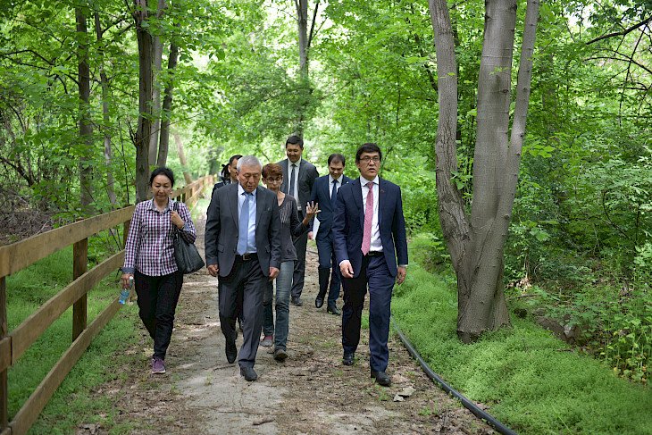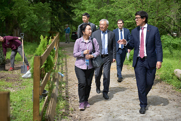 Эдил Байсалов лабораторияларды, күнөсканаларды, бакчаларды кыдырып чыгып, аймакты мындан ары өнүктүрүү боюнча долбоорду иштеп чыгууну тапшырды. Учурда биздин аймакка тиешелүү уникалдуу өсүмдүктөр өскөн Ботаникалык бак кейиштүү абалда турат.
