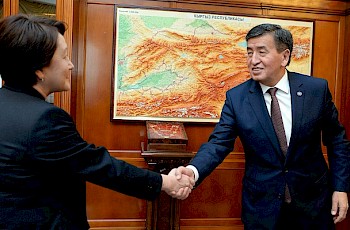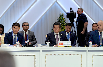 "Гибриддик газон технологиясы" менен камсыздалып, АФКнын финалдык жана ФИФАнын тайпалык матчтары өткөрүлөт", — деди президент.