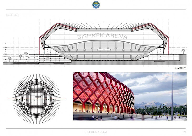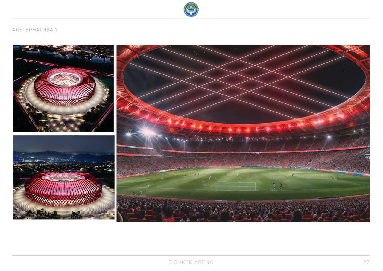 "Борбор Азиядагы 45 миң көрүүчүгө ылайыкталган эң чоң стадион. Стадиондун дизайнынын өзөгүн кыргыз маданиятынын маанилүү бөлүгү болгон боз үй феномени түзөт.