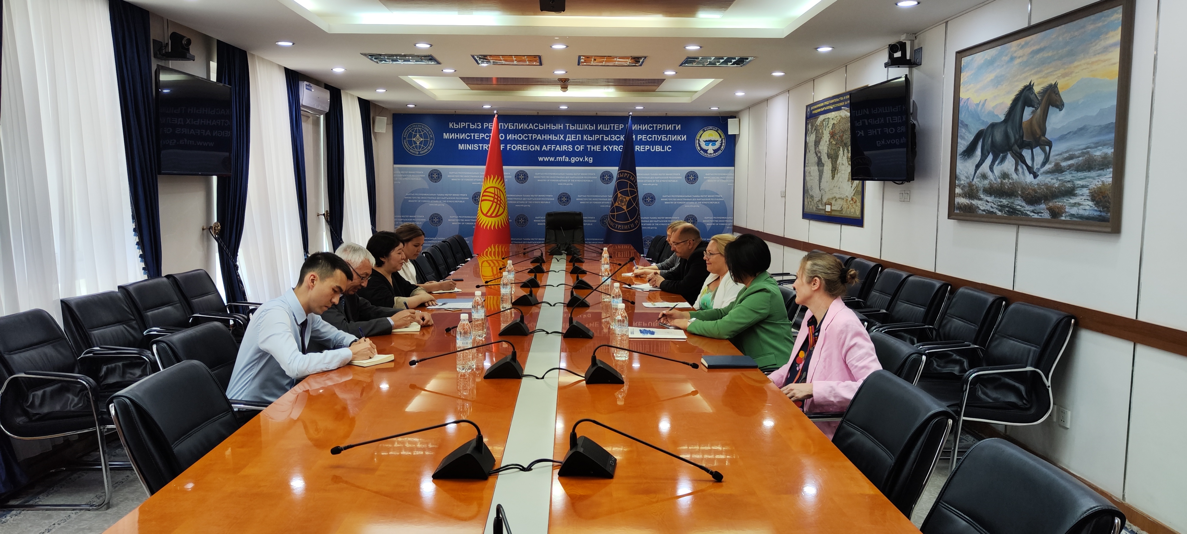 Сүйлөшүүнүн жүрүшүндө министрдин орун басары Д.Кемелова ЕККУнун Кыргызстанда өлкө өкмөтүнүн демократияны чыңдоо, социалдык-экономикалык өнүгүү жана коопсуздукту камсыз кылуу, өндүрүштү жана ишкердикти колдоо боюнча күч-аракеттерин колдоого багытталган жигердүү ишмердүүлүгүн белгиледи.