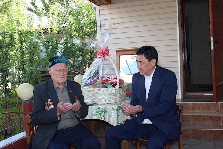 Экономика министри Санжар Муканбетов 9-майдын алдында ардагер Абдулхалик Гайнинди министрликтин жана өз атынан куттуктаган.