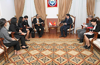 Бишкек, 26.11.21. /Кабар/. Кыргызстандын Казакстандагы элчиси Дастан Дюшекеев Нур-Султан шаарынын акими Алтай Кульгинов менен жолугушту. Бул тууралуу КР ТИМдин басма сөз кызматынан билдиришти.