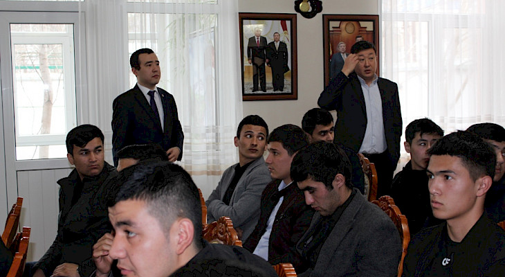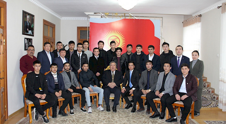 Бишкек, 17.02.20. /Кабар/. Кыргызстандын Тажикстандагы элчиси Жаныш Рүстөнбеков Тажикстан Республикасындагы «Мекендеш» кыргыз диаспорасынын жетекчиси К.Курманбаевдин катышуусу менен Тажикстандын ЖОЖдорунда окуган кыргыз студенттери менен жолугушту.