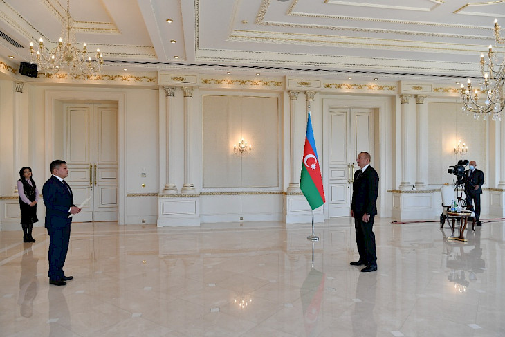 Бишкек, 29.10.21. /Кабар/. 2021-жылдын 28-октябрында Баку шаарында Кыргызстандын Азербайжан Республикасындагы элчиси Кайрат Осмоналиевдин Азербайжан президенти Ильхам Алиевге ишеним грамоталарын тапшыруу аземи болуп өттү. Бул тууралуу КР Тышкы иштер, тышкы соода жана инвестициялар министрлигинин басма сөз кызматы билдирет.