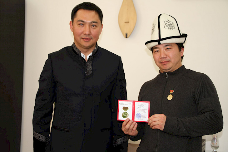 Соңунда министр мындай өнөр адамдары менен сыймыктанаарын белгилеп, Маданият министрлигинин “Маданияттын мыкты кызматкери” төш белгиси менен сыйлады.