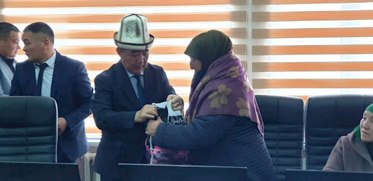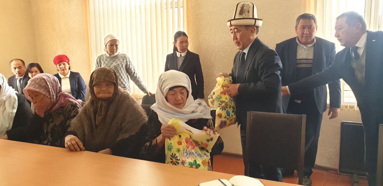 Жолугушуу учурунда курман болгондорду эскерүү иретинде куран окулуп, министрликтин атынан азык-түлүк топтомдору тапшырылды.