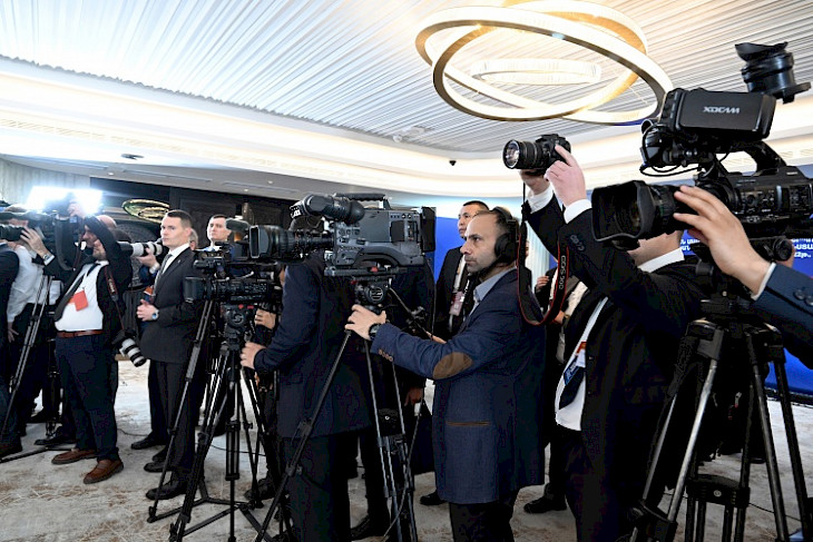 Учурашуу жана биргелешип сүрөткө түшүү аземи аяктагандан кийин мамлекеттердин башчылары ЖККУ ЖКК тар курамдагы сессиясына катышуу үчүн залга өтүштү.