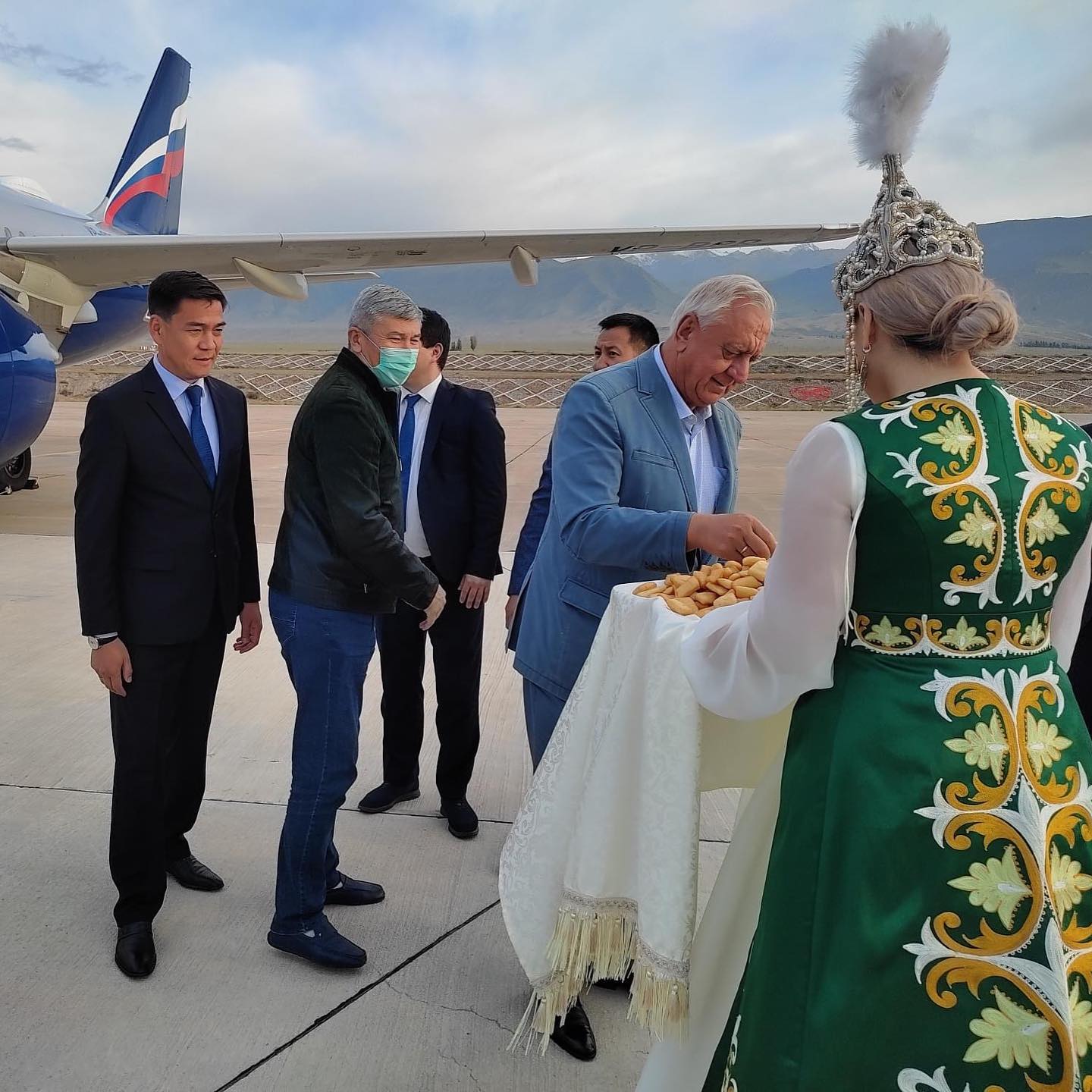 Делегация мүчөлөрүн Тамчы айылындагы "Ысык-Көл" эл аралык аэропортунда КР президентинин Ысык-Көл облусундагы ыйгарым укуктуу өкүлү Мирбек Кожоев тосуп алды.