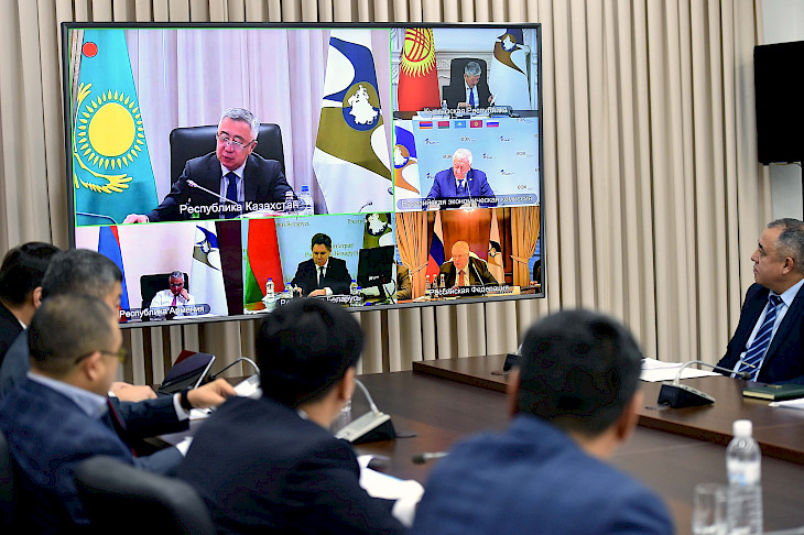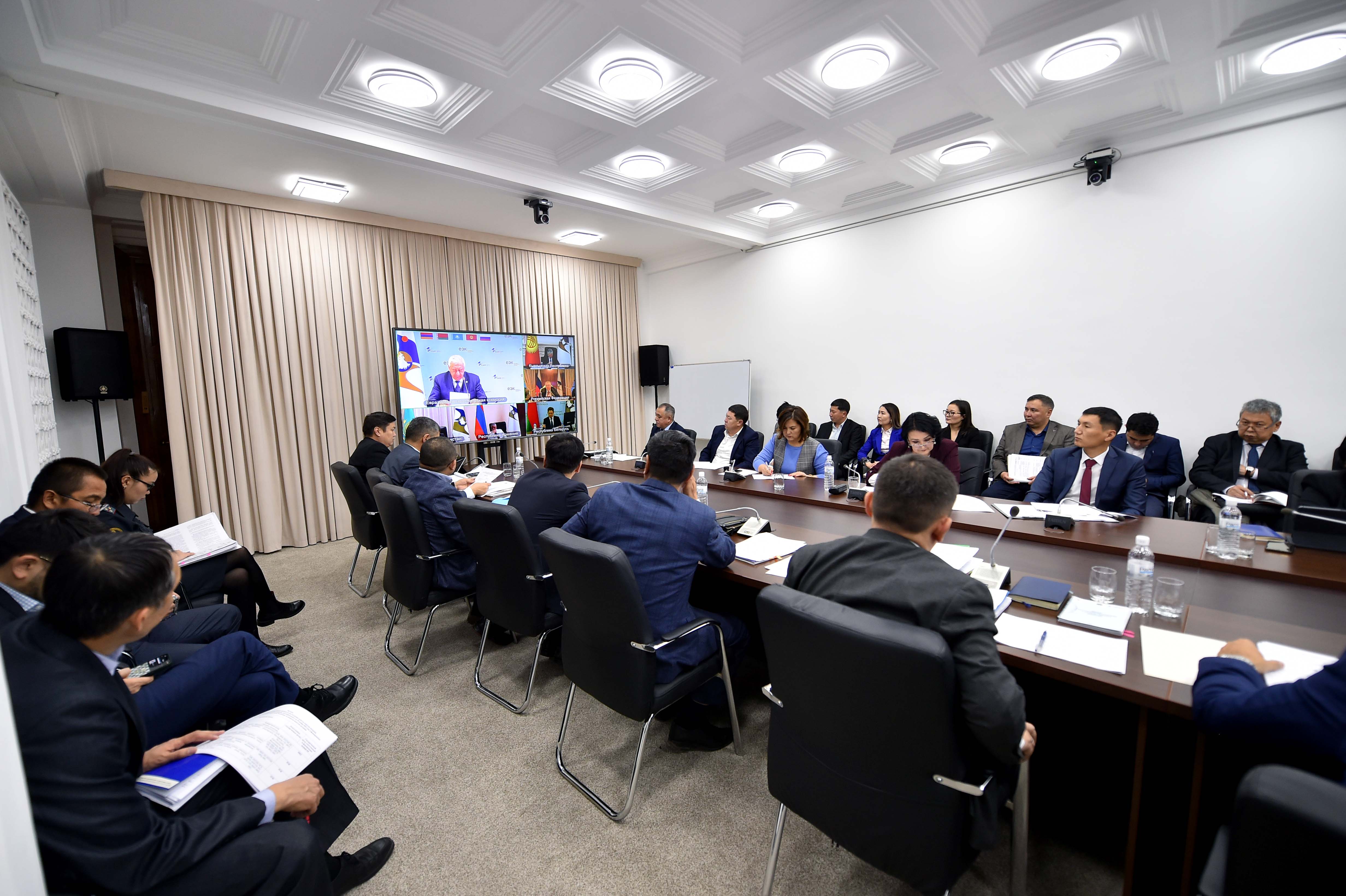 Бишкек, 26.11.22. /Кабар/. Министрлер кабинетинин төрагасынын биринчи орун басары Адылбек Касымалиевдин төрагалыгы астында видеоконференция режиминде Евразия экономикалык комиссиясынын Кеңешинин кезектеги жыйыны болуп өттү.