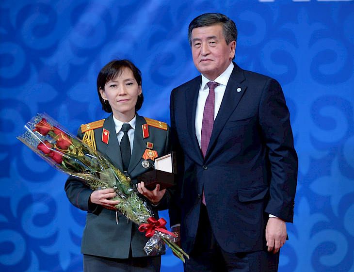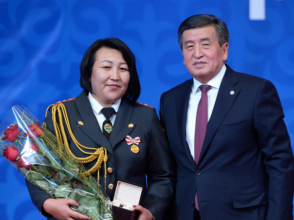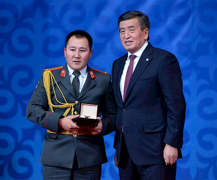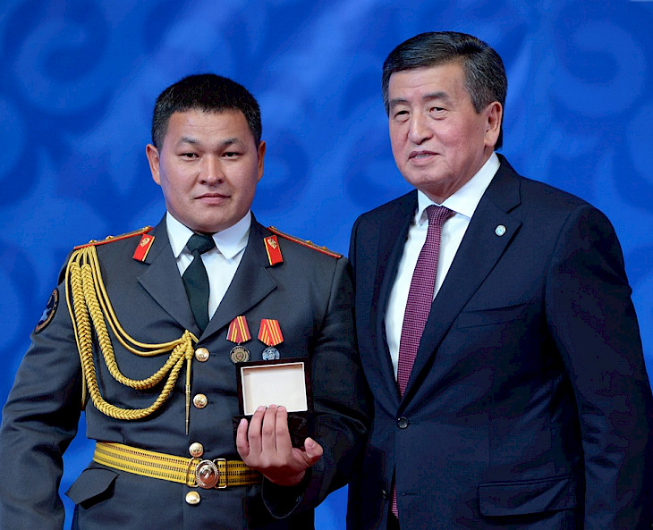 Президент Сооронбай Жээнбеков кызматтык милдетин үлгүлүү аткаргандыгы, ошондой эле кылмыштуулукка каршы күрөшүү ишине жана коомдук тартипти камсыздоого кошкон олуттуу салымы үчүн өзгөчө айырмаланган ички иштер кызматкерлерине бир катар мамлекеттик сыйлыктарды тапшырды.