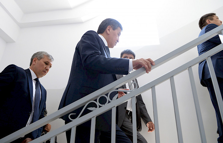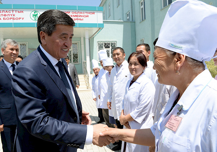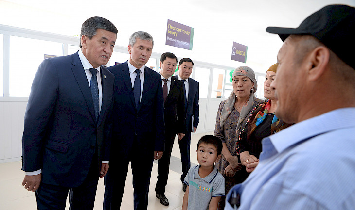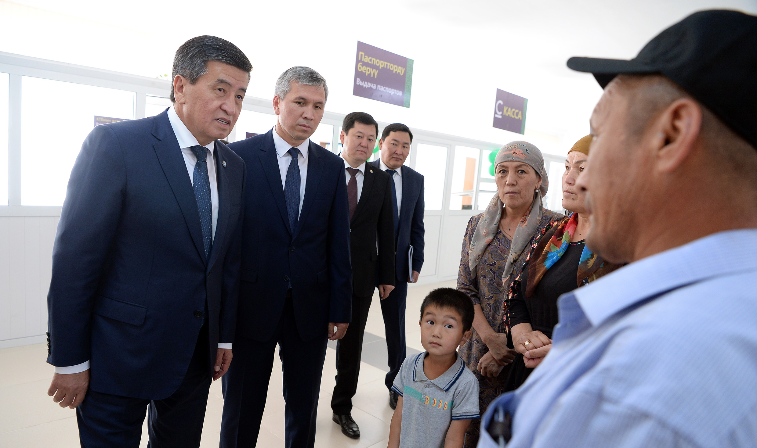 Сооронбай Жээнбеков иш сапарынын алкагында Баткен шаарындагы Калкты тейлөө борборунун (КТБ) иши жана Чет-Булак кварталындагы «Өнөр жай аймагын» курууга ылайыкташтырылган долбоор менен таанышып, Баткен шаарындагы үй-бүлөлүк медициналык борборунун жаңы имаратын көрдү.