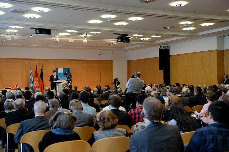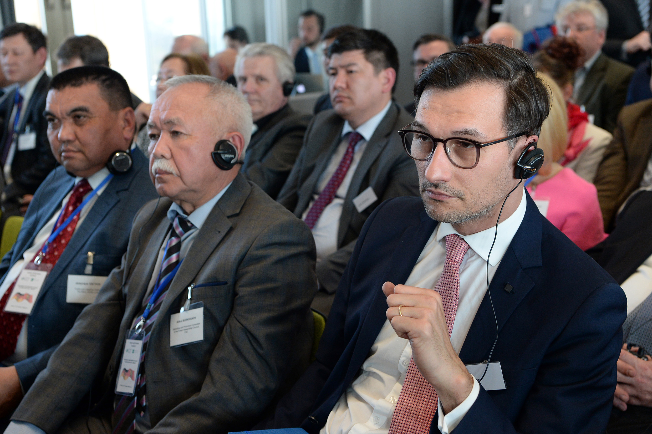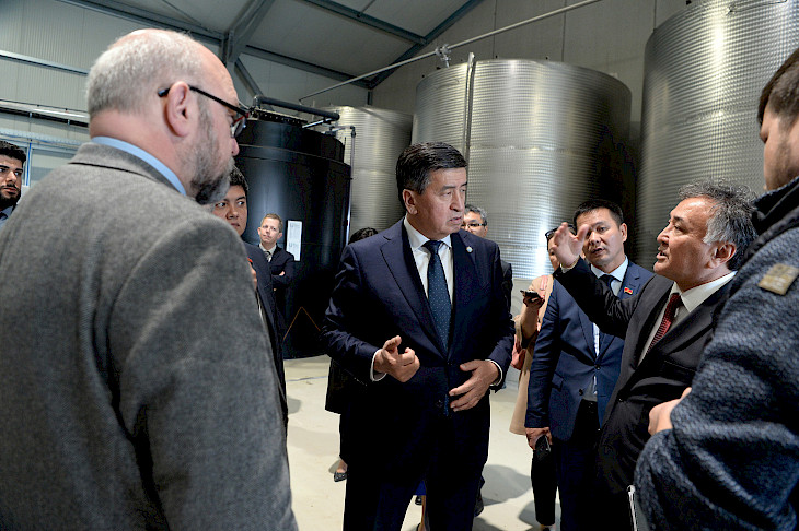 Расмий визиттин биринчи күнү, 15-апрель экономикалык блокко арналды, атап айтканда, Мамлекет башчысы кыргыз-герман экономикалык форумуна катышып, Х.Зайдель атындагы Фонддо сөз сүйлөдү, андан соң айыл чарба ишканасын кыдырды.